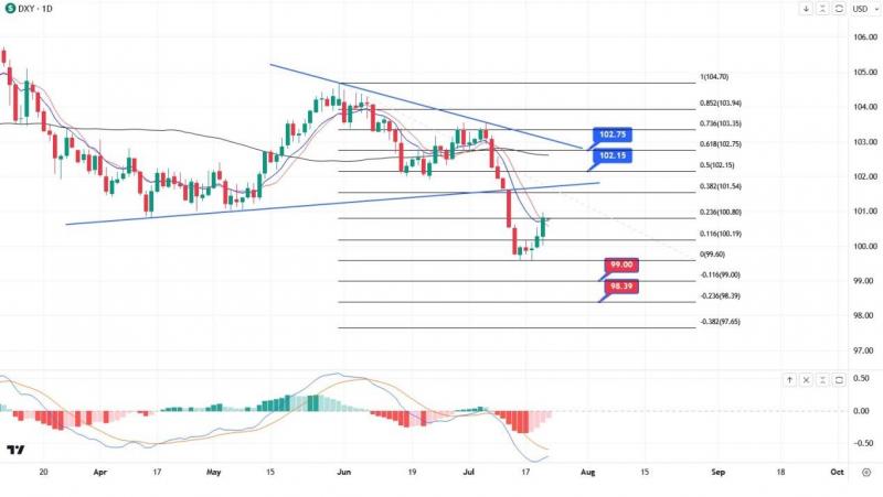 ATFX环球汇市:就业韧性提振美元连涨,下周重磅行情前偏向观望 环球汇市行情摘要—— 7月20日,美元指数上涨0.62%,至100.85 欧元下跌0.67%,至1.1127美元; 英镑下跌0.61%,至1.2859美元; 美元兑日元上涨0.35%,至140.20。 隔夜在最新经济数据的带动下,美元延续了升势,主要非美货币多数下跌。 此前数据