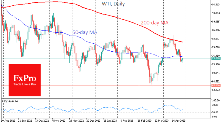 WTI原油连续第三天稳定在75美元附近,处于月度最低水平。经济放缓拉低了原油价格,但欧佩克+的协调维持了市场稳定。油价已经回到了一个区间,从这个区间退出有望产生溃坝效应。 Fxro高级分析师AlxKutikvich指出:在4月初欧佩克+意外减产后,市场缩小了7%的缺口,原油波动性下降。目前75左右的水平也是去年12月至