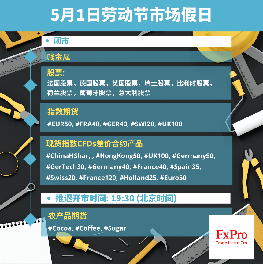 今日(5月1日),中国、中国香港、中国台湾、新加坡、韩国、越南、英国、法国、德国、意大利、西班牙股市休市,其中沪深交易所、上期所等休市至周三,期间北向交易关闭。