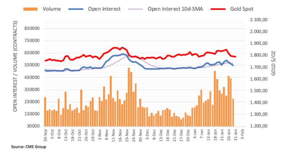 根据芝商所最新数据显示,上周五黄金期货市场未平仓合约连续三个交易日减少,这一次减少约1.41万手合约。同样,黄金期货交易量连续两个交易日下降,目前减少约16.45万手合约。 金价似乎在1800美元附近获得支撑 继触及新高1,850美元大关(1月25日)后,过去数个交易日金价仍维持承压并大幅下跌。上周五金价下跌