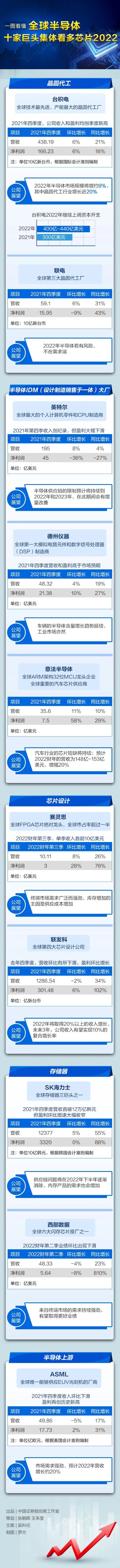 一图看懂全球半导体,十家巨头集体看多芯片2022。