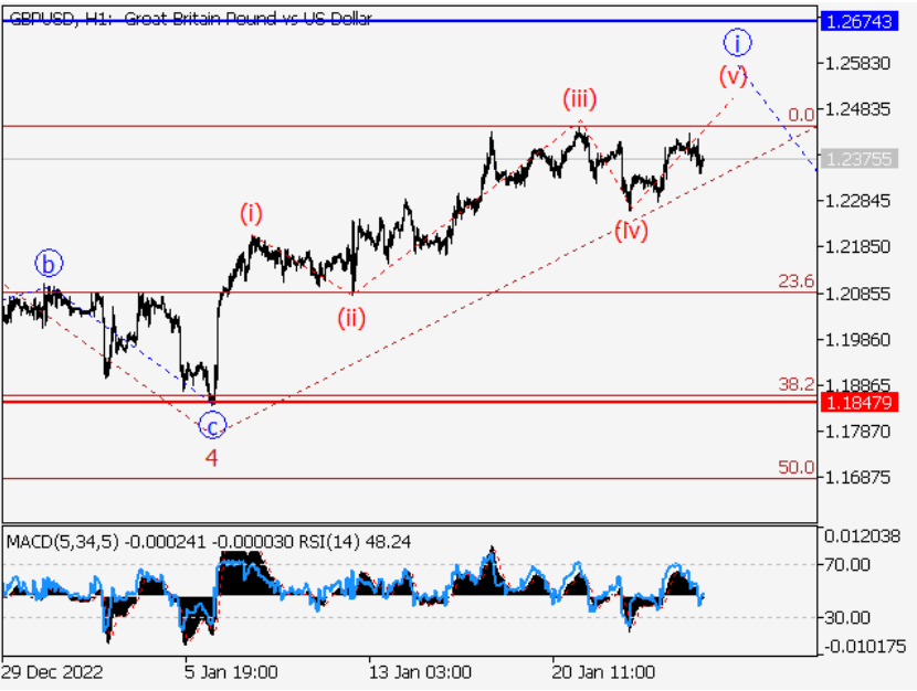 主要情景:英镑兑美元考虑从1.1847上方的修正中获得多头头寸,目标为1.2674-1.3000。 另一种情况:突破并盘整1.1847水平将允许该货币对继续下跌至1.1498-1.1285水平。 货币分析:第五波大V在日线图上大概已经发展结束,第五波V作为它的一部分形成。第一个看涨波(1)在H4图上开始发展,(1)的第3个波形成,在(1)内