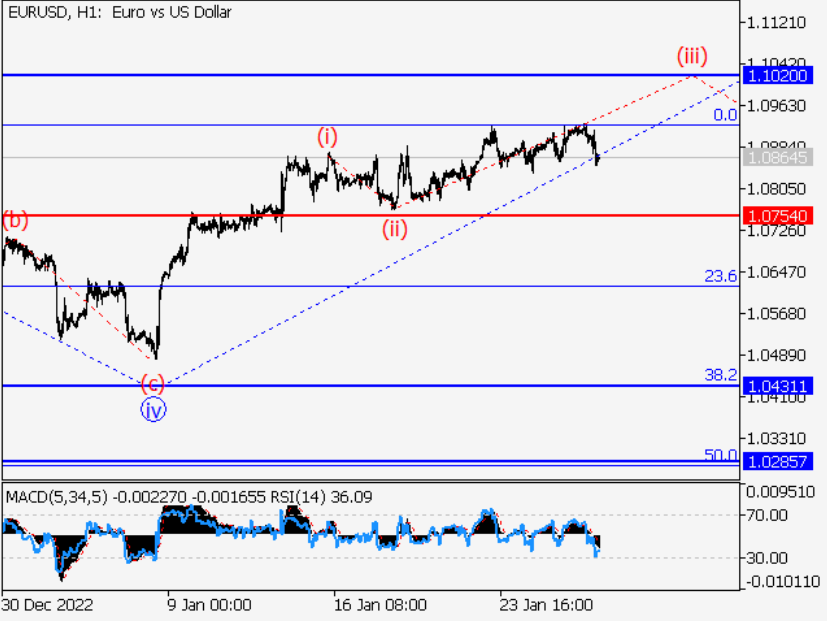 主要情景:欧元兑美元考虑从1.0754上方的修正中获得多头头寸,目标为1.1020-1.1300。 另一种情况:突破1.0754下方的盘整将允许该货币对继续下跌至1.0431-1.0285。 货币分析:一个较大a度的看跌波可能在日线图上完成,А的第五波(5)构成了它的一部分。显然,一个上升波开始在H4图上发展,第一个反趋势波(A)度较
