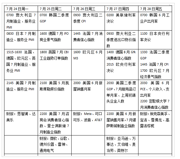 上周国际市场风云变幻,英国通胀增速超预期放缓,美国制造业、房地产数据持续承压,外界继续关注央行政策前景。 市场方面,美股涨跌互现,道指周涨2.08%,纳指周跌0.57%,标普500指数周涨0.69%。欧洲三大股指全线走高,英国富时100指数周涨3.08%,德国DAX30指数周涨0.45%,法国CAC40指数周涨0.79%。 本周看点颇多