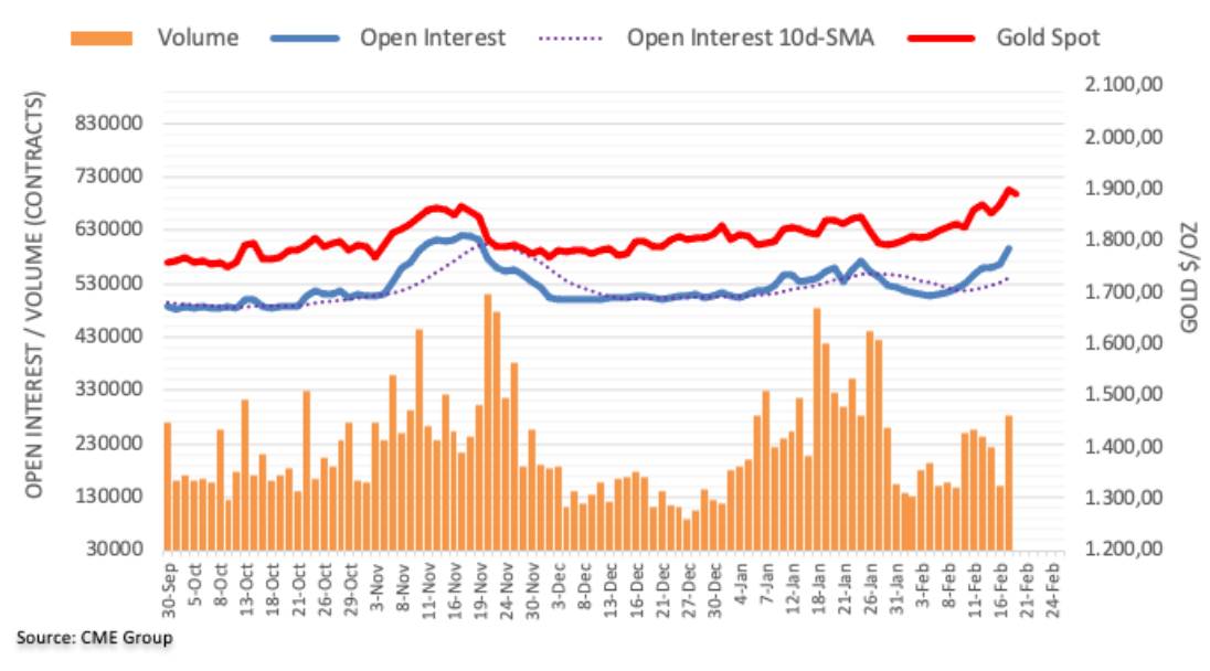 考虑到芝加哥商业交易所集团初步数据,周四黄金期货市场的未平仓合约连续第二日增长,此次增长约2.97万份。成交量大幅增长13.28万份合约左右。 金价目前看向2000美元/盎司 过去几个小时金价最终触及1900美元的关口,但依然无法收盘于其上。周四金价上涨之际未平仓合约和成交量齐增,强化了金价短期内可能进一