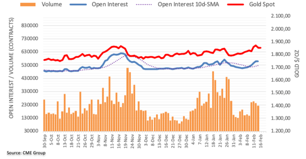 在地缘政治紧张局势下,看空者在至关重要的美联储1月会议纪要召开前稍事休息,令金价在周二的暴跌中趋稳。正如FXtrt分析师迪瓦尼?梅塔(Dhwaihta)指出的那样,只要金价保持在38.2%的斐波那契回撤位1842美元上方,则前景仍保持乐观。 看涨潜力保持不变 FOC会议纪要可能会缓和市场对今年大幅加息的预期。任何