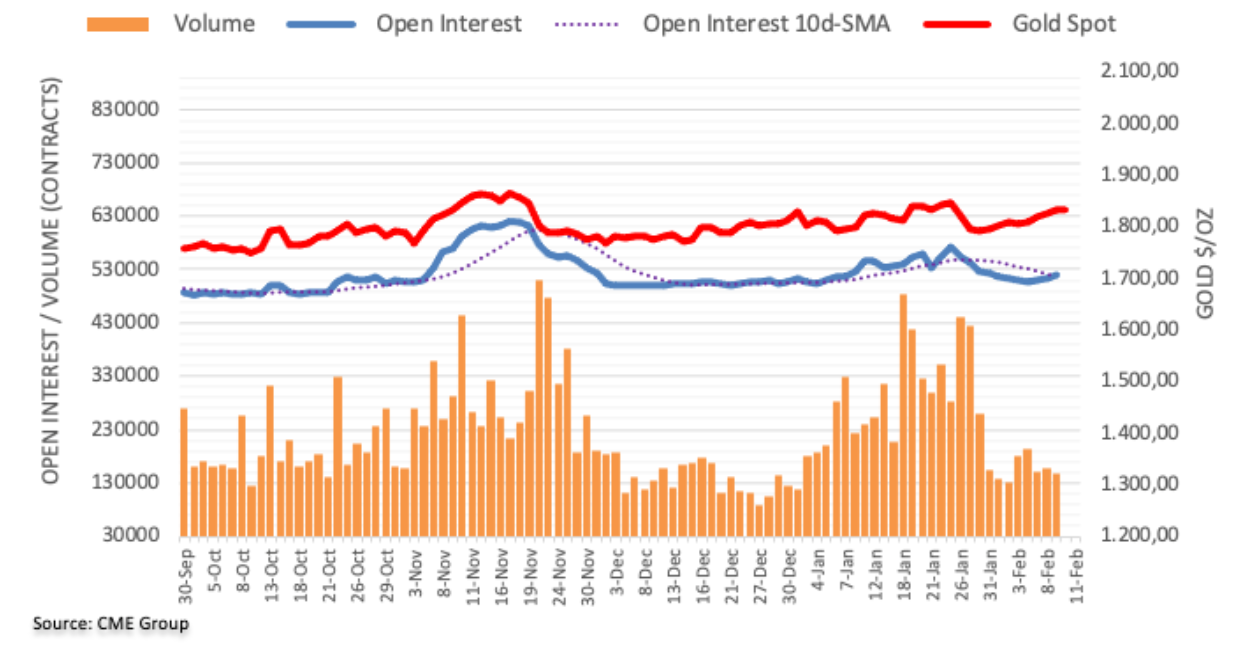 根据芝加哥商品交易所集团(CGrou)的初步数据,黄金期货市场的未平仓合约周三连续第三个交易日增加,这一次增加了近8千份合约。而交易量却逆转了之前的增长,减少了约1.15万份合同。 金价仍有望升至2022年的高点 周三,黄金继续延续上行趋势,在未平仓头寸增加的情况下,突破了1830美元区域。话虽如此,强