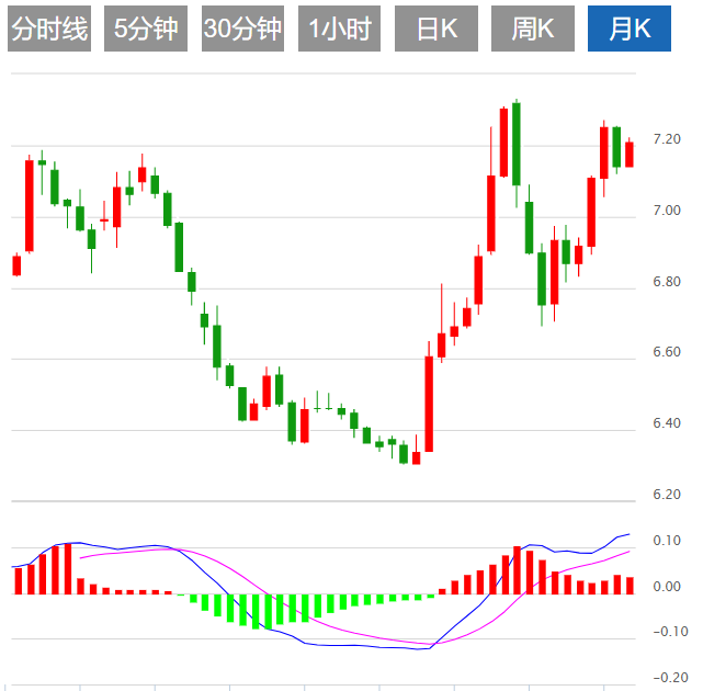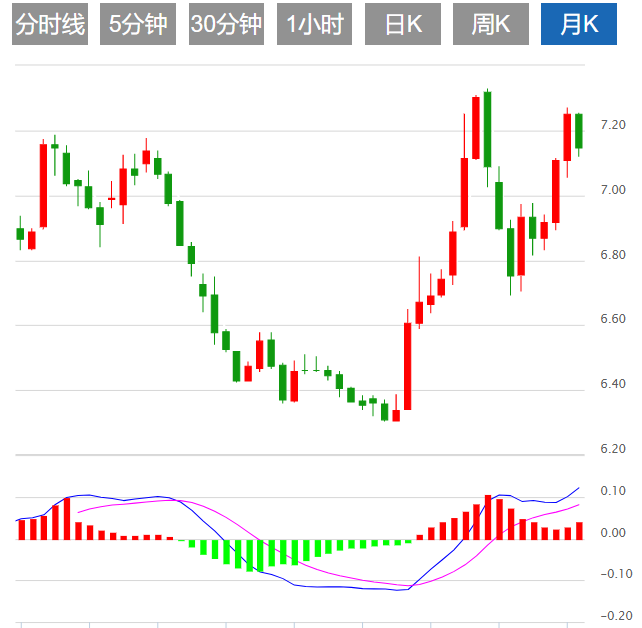 7月人民币汇率走势回顾与8月展望 2023年7月,受到中美利差倒挂、季节性购汇需求、货币政策分化等因素影响,人民币汇率大幅走强,总体呈现在7.1265至7.2620区间内波动式上升态势。其中,人民币在岸汇率从7.2620涨至7.1645,累计上涨975个基点;人民币中间价从7.2258调升至7.1338,累计调升920个基点;人民币离岸汇率从