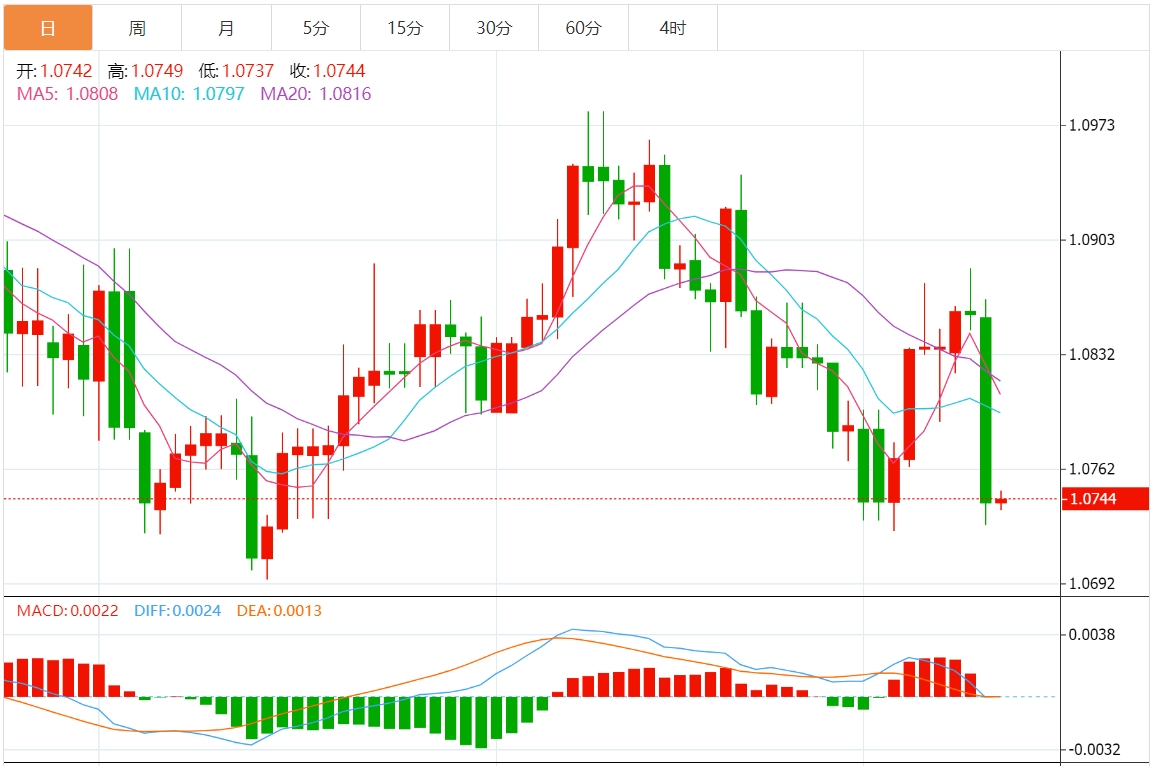 周四欧盘,欧元/美元在周三下跌近1%后继续大幅承压,维持在上周低点1.0725附近。 高于预期的美国3月通胀率降低了市场对美联储在6月首次降息的预期,强力提振美元,引发主要非美货币下跌。 市场焦点转向接下来的关键事件,今日公布的欧央行利率决议。 市场普遍预计欧央行将维持利率不变,市场将寻求欧央行