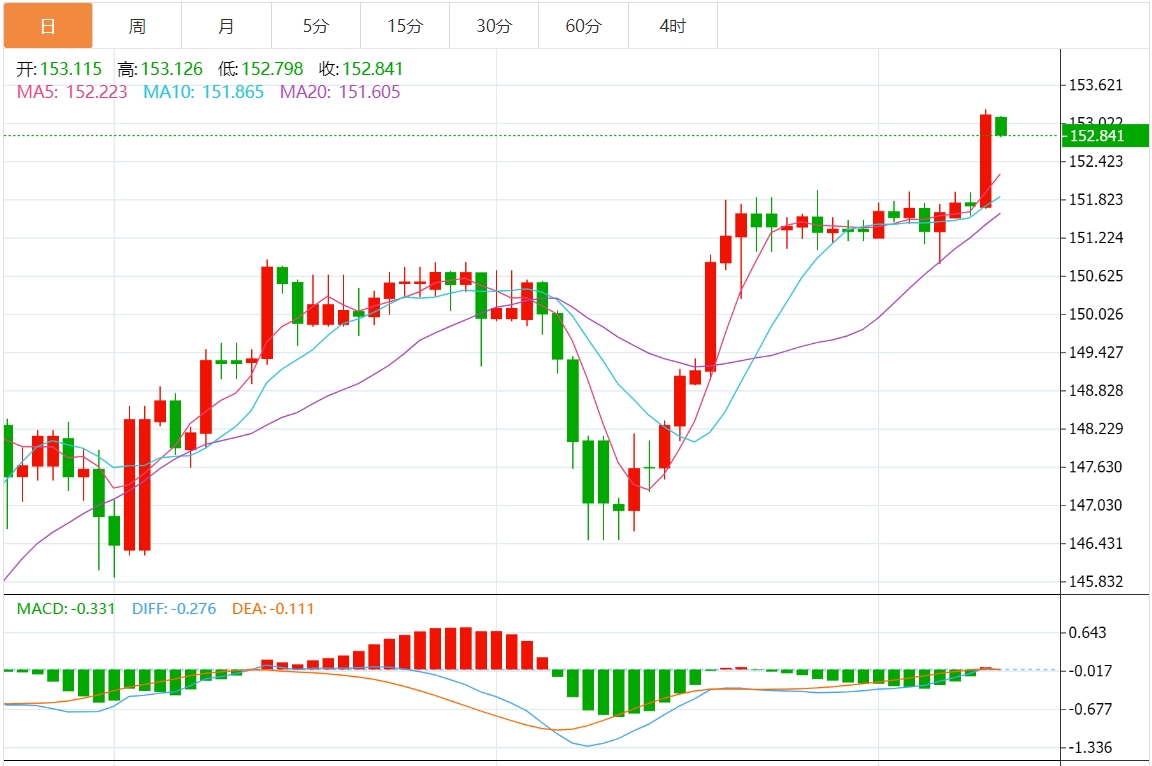 周四欧盘,日元兑美元回吐盘中小幅涨幅,推动美元/日元在周四欧洲早盘突破153.00关口,并回到前一天触及的数十年高点附近。美日利差将保持较大的预期被证明是削弱日元的关键因素,并成为该货币对的顺风。事实上,日本央行(oJ)在3月会议结束时采取了鸽派基调,没有就未来的政策步骤或政策正常化的步伐提供任何指导。