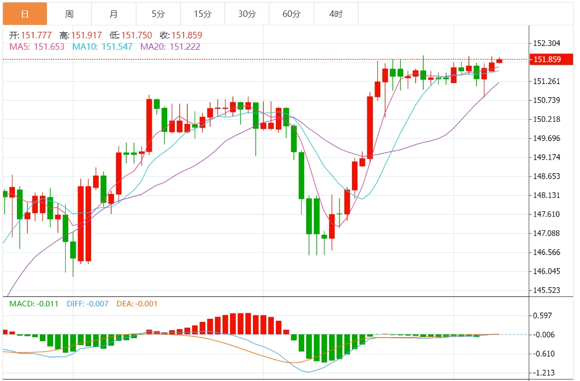 周二(4月9日)亚市早盘,美元兑日元高位窄幅震荡,目前交投于151.86附近。汇价隔夜曾冲高至151.94,今日早间日本当局发表新的口头表态。 市场动向:尽管当局进行了口头干预,日元多头仍未能获得任何喘息机会 日本当局最近表示愿意干预市场以应对本币的任何过度贬值,这有助于限制日元的下行空间。日本首相岸