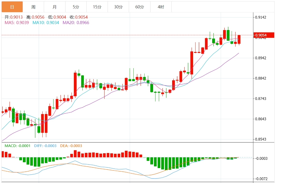 美元兑瑞郎周一连续第二个交易日上涨,在欧洲交易时段升至0.9050附近。以色列决定从加沙南部撤出更多部队,可能是由于国际压力越来越大,这有助于缓解紧张局势。此外,以色列和哈马斯之间的和平谈判已在埃及恢复,减少了可能削弱对避险瑞士法郎(CHF)需求的担忧。 美国国债收益率上升为美元提供支撑 未经季