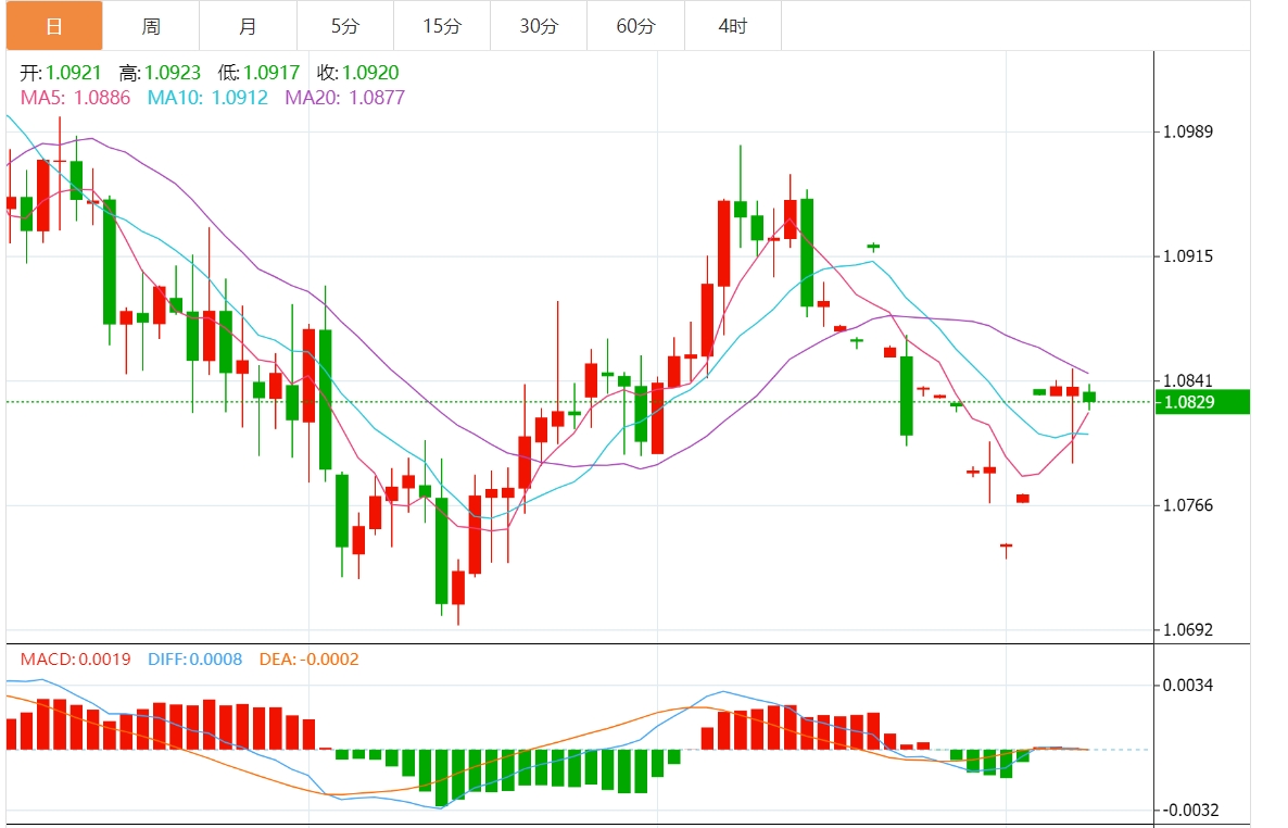 周一亚盘,欧元/美元小幅走低,因乐观的美国非农就业数据继续支撑美元。积极的风险基调可能会限制避险资金,并为主要货币对提供一些支撑。交易员现在期待美国CI、FOC会议纪要和欧洲央行会议带来新的动力。 欧元/美元汇率基本面行情分析 欧元/美元难以利用周五从1.0800以下水平反弹约50点的良好势头,并在周