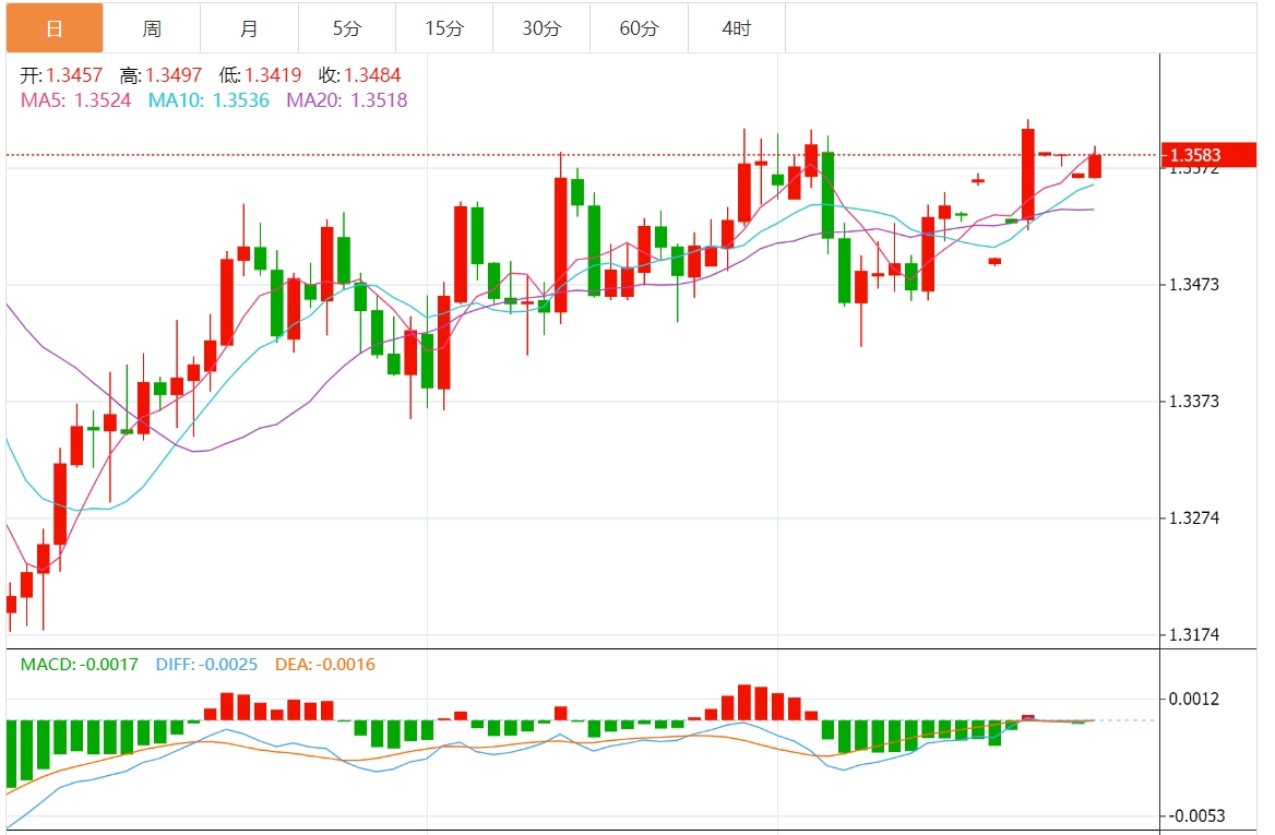 周四亚盘,美元/加元走高,现报1.3585附近,美元兑加元从周二触及的1.3550反弹,再次延伸至1.3600低位区域。 市场基本面分析 加拿大央行高级副行长罗杰斯警告称,低生产率将成为经济增长的障碍。美国宏观经济数据喜忧参半,耐用品订单增幅超出预期,而世界大型企业联合会消费者信心指数意外收缩。 根据芝