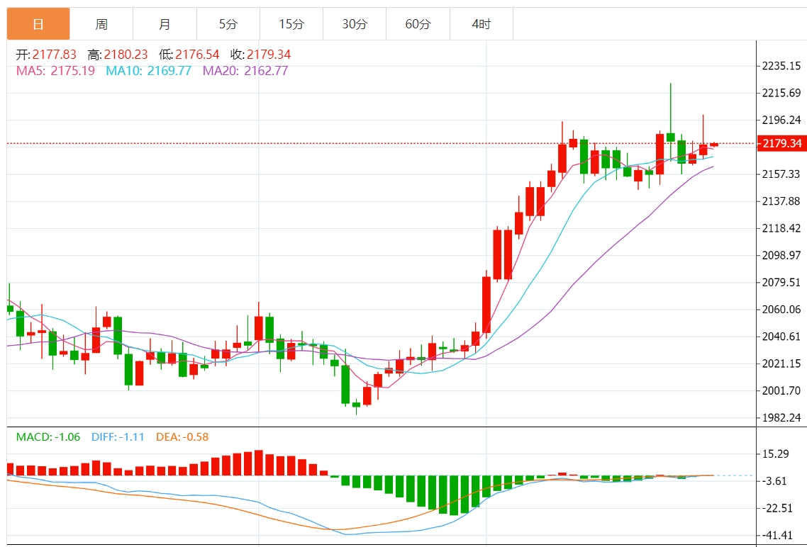 周四(3月28日)亚市盘初,现货黄金小幅走弱,目前交投于2190.88美元/盎司附近,跌幅约0.18%,因美联储理事称需要“几个月”更好的通胀数据才能进行降息。金价周三上涨0.74%,日线录得三连阳,因为投资者普遍预计美联储将在6月份开始降息。 目前投资者在等待本周晚些时候的美国关键通胀数据,该数据可能为美联储的政
