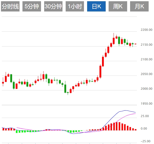 周三(3月20日)亚市盘初,现货黄金窄幅震荡,目前交投于2157.80美元/盎司附近。金价周二小幅回落,现货黄金收跌0.13%,收报2157.40美元/盎司,盘中最低曾触及2147.03美元/盎司,因美国2月独栋屋房屋开工大幅反弹,触及近两年最高,美元走强,市场关注美联储为期两天的政策会议结束时发出的利率立场信号。 黄金市场消