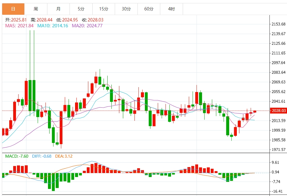 周四亚洲时段,金价走高,但仍遇阻50日简单移动均线(A)的关键阻力位,该水平处在2032美元附近即前日触及的一周高点。中东冲突持续支撑对传统避险资产的需求,加上美元(UD)走弱,对金价起到提振作用。然而,在美联储(Fd)将在更长时间内维持更高利率的预期不断加强的情况下,金价上涨缺乏看涨动能。 市