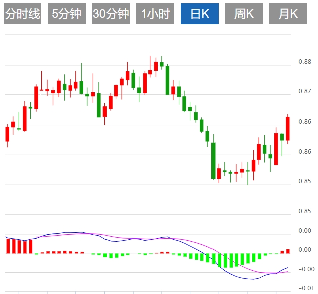 周三欧盘,美元/瑞郎窄幅震荡,盘中报0.8612,涨幅0.05%。由于美联储会议释放出的鸽派加息信息超过预期,美元指数处于不利地位。随着美元资产整体吸引力下降,美元/瑞郎预计将进一步下跌至0.8555。 标普500期货在亚洲市场尾盘有所上涨,反映出市场的冒险情绪。美元指数在修正至102.10附近后转为横盘整理。市场参与者