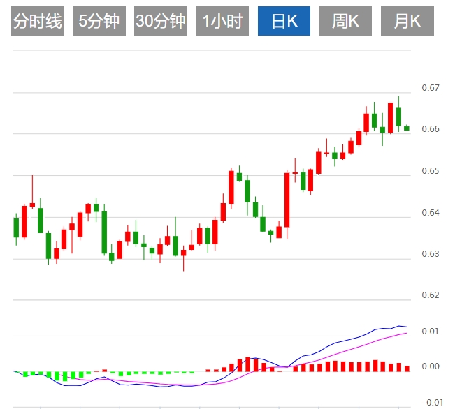 澳元/美元周二连续第二天面临抛售压力,对中国数据好于预期的发布反应不大。现货价格目前在0.6615-0.6610区域附近交易,当日跌幅不到0.10%,交易员热切等待澳大利亚储备银行(RA)的政策决定。 澳元/美元汇率基本面行情分析 一项私人调查显示,51月中国服务业的商业活动增长速度更快。中国财新服务业采购经