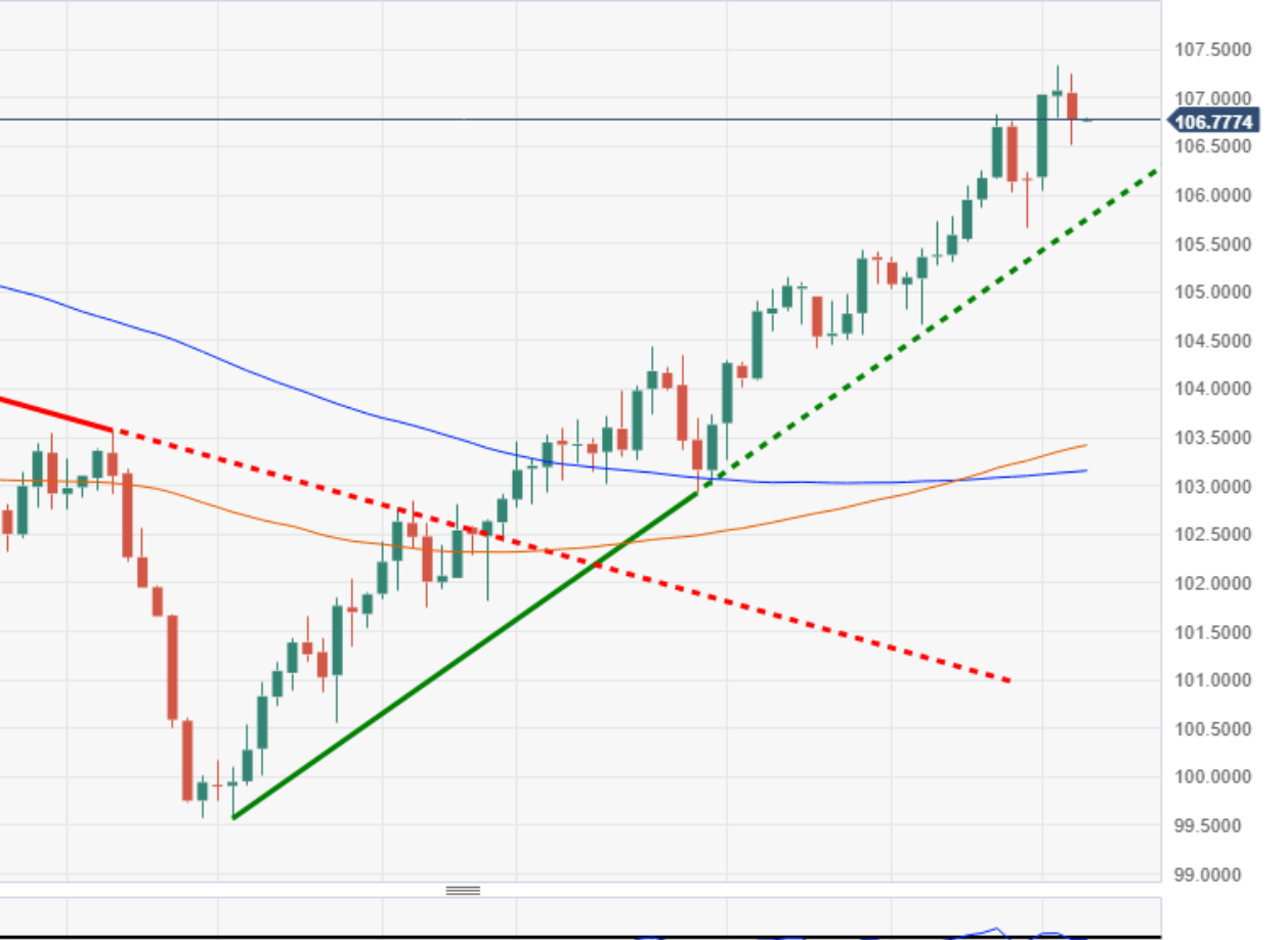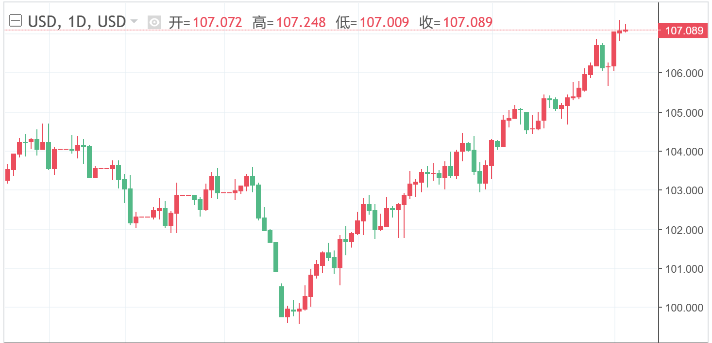 美元/瑞郎持稳在周二创下的七个月高点附近,在周三欧洲早盘时段连续第三天走高至0.9220附近。受美国联邦储备委员会(Fd)利率轨迹的影响,市场情绪谨慎,该货币对获得上行支撑。 美元/瑞郎汇率基本面行情分析 美元指数(DXY)徘徊在107.10附近,与周二创下的11个月高点持平。强劲的美国就业数据和较高的美国国债收