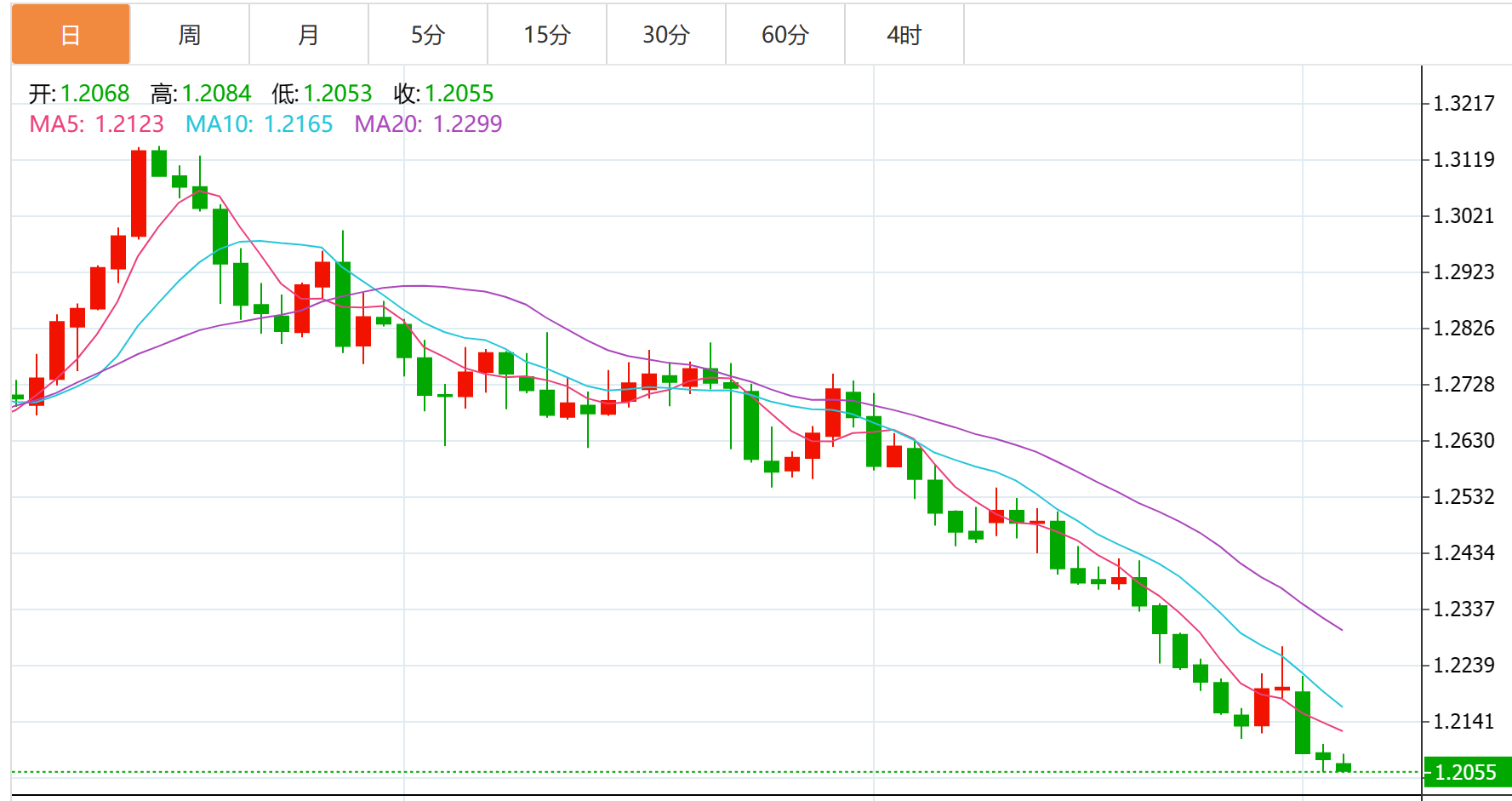 周四欧盘,英镑兑美元难以展开明显反弹,震荡于3月16日以来的最低水平即前日触及的1.2050附近。联准会(Fd)进一步收紧政策的前景仍然支撑着美债收益率的走高,并提振美元企稳于10个月高点附近。加上市场维持全面的风险厌恶环境一起,被视为另一个有利于美元相对避险地位的因素。除此之外,9月英国央行意外按兵不动将继