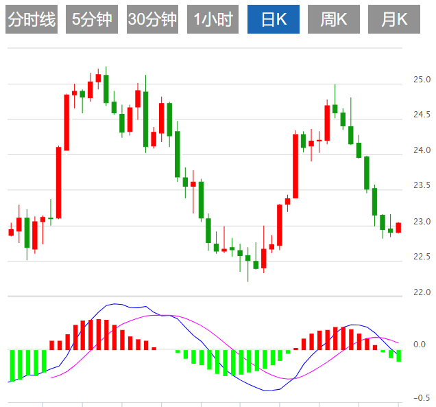 周一亚盘,白银在新一周的第一天吸引了一些买家,结束了连续八天的下跌,并在亚洲时段回升至23.00美元以上。然而,白色金属仍处于两周半低点的冲击范围内,周五重新测试的区间约为22.85美元至22.80美元,似乎仍有可能进一步下跌。 白银技术走势分析 日线图上的振荡因素一直在获得负面吸引力,并远离超卖区,
