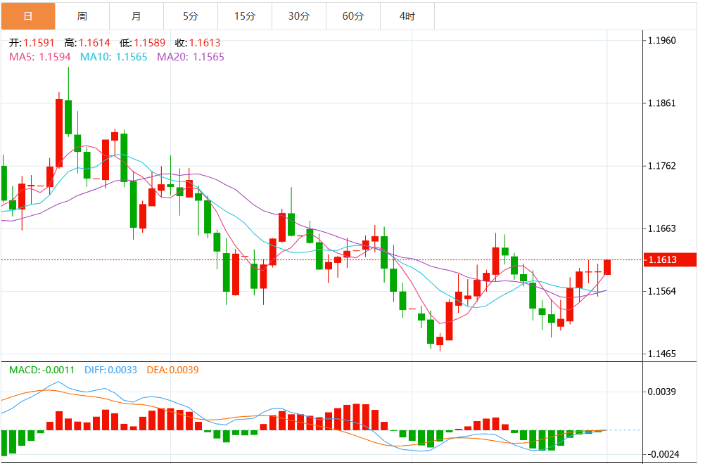 周一亚盘,欧元/美元在交易者押注美联储下个月降息时保持上涨,目前徘徊于1.1613附近,日内上涨0.14%。 市场基本面分析 在对降息的日益猜测中,美元徘徊不前。来自CFdWatch工具的数据表明,12月会议上将联邦基金利率下调25个基点的概率为87%。这一重新定价是由纽约联邦储备银行的约翰·威廉姆斯和美联储理事克