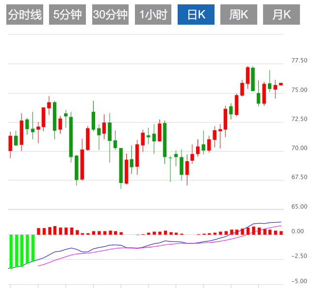 周五亚盘,WTI原油上周五早盘连续四周上扬后,温和上涨于75.80美元附近,准备继本周震荡后平静收盘。在这期间,WTI油价波动体现石油市场在围绕中国和美国的喜忧参半的催化剂下维持挣扎。 WTI油价行情基本面分析 周四在美国数据和中国经济忧虑暗示未来原油需求放缓之后,能源股出现下滑。这也引发了油价的回落,即