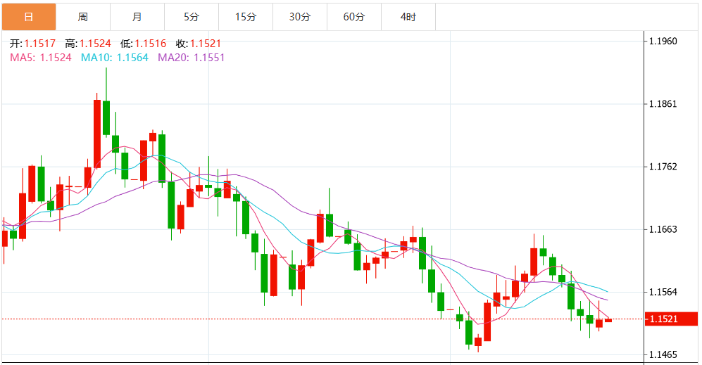 周三亚盘,欧元/美元徘徊于1.1568附近,欧元/美元周三因稳定的I和疲弱的零售销售数据而上涨,市场对美联储12月降息的预期增强。 市场基本面分析 随着美国经济数据表明通胀正在下降,消费者减少支出,并对就业市尝收入和财务状况变得悲观,共同货币延续了其涨势。美国劳工统计局(L)显示,生产者物价指数(I
