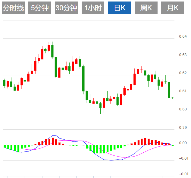 周四亚盘,虽然盘中小幅上涨至0.6080附近,但纽元/美元维持前日看跌倾向。 该货币对跌破自5月31日以来的上升支撑线,该线目前在0.6140附近构成短期阻力位。ACD信号看跌以及持续交投于21日A均线0.6145下方也增强其下行倾向。 对此,纽元兑美元空头料试探10-2月升势的50%回档位,接近0.6030。 不过月度低点和6
