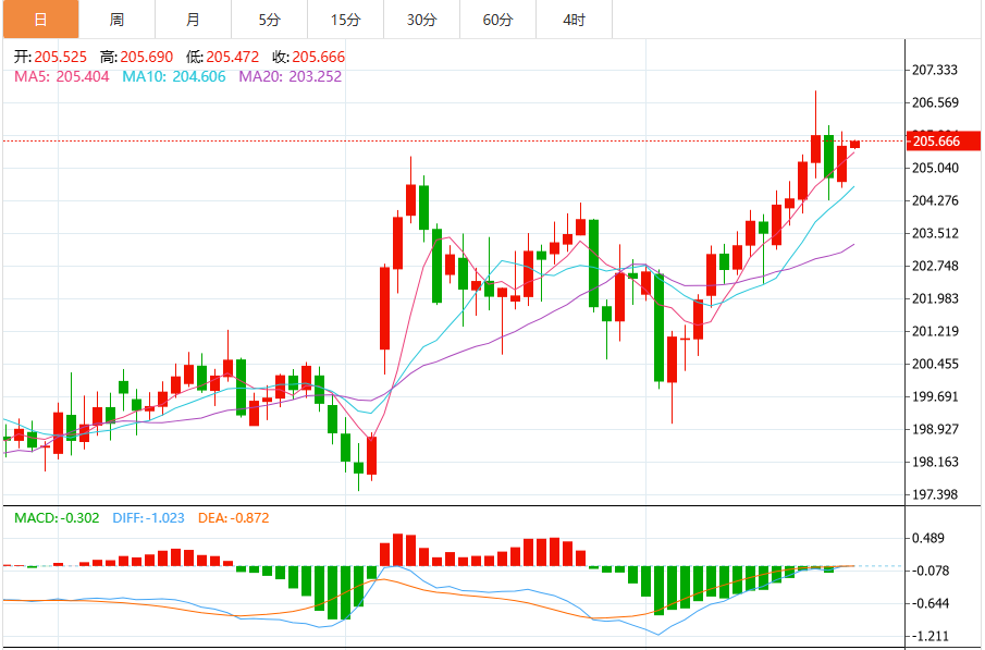周二亚盘,英镑/日元徘徊于205.68附近,技术上,相对强弱指数(RI)信号显示出看涨动能,随着货币对保持在205.00以上,向上趋势受到青睐。 英镑/日元价格预测 英镑/日元呈上升趋势,似乎有望收于205.00以上。相对强弱指数(RI)所描绘的动能支持进一步上涨。考虑到背景,继续上涨是阻力最小的路径。 如