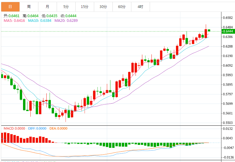 周三亚市,纽元/美元盘整于0.6460附近,数小时前自六个月高位回落。前一日,纽元/美元反弹至6月以来的最高水平,并创下两周来最大单日涨幅,但当日收盘未能突破关键阻力0.6480,该阻力汇合8月和12月初高位。 纽元/美元回调也自相对强弱指标超买获得线索,表明纽元/美元将出现更多获利回吐。不过,11月初以来维持上行