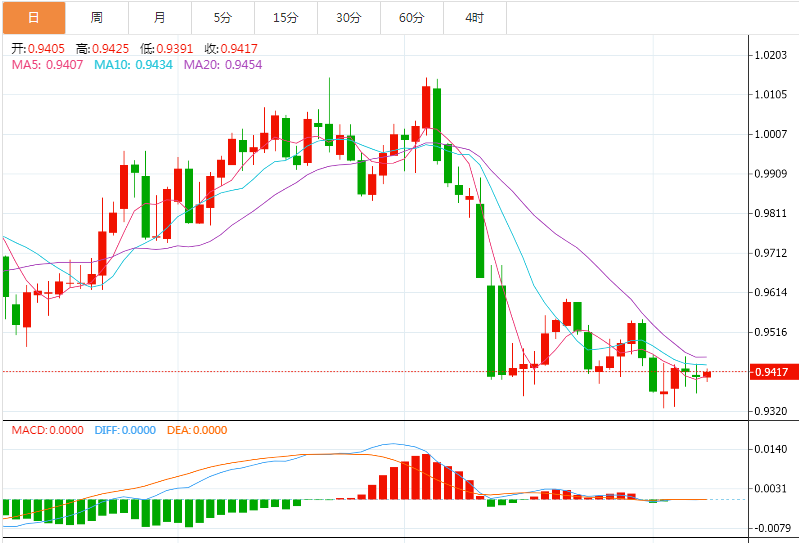 周四亚盘,美元/瑞郎反弹至0.9420附近,录得三周来首周上涨。该货币对也结束了两日跌势,逐步接近盘中高点。 技术上,汇价最新上涨可能与价格多次反弹脱离一周前的上行趋势线有关。此外ACD信号看涨以及相对强弱指标(14)上升但未超买也令该货币对多头充满希望。 不过在0.9435附近的200-HA限制汇价立即上行。此外