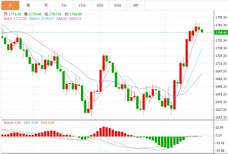 周四(11月17日)亚洲时段,现货黄金震荡微跌,目前交投于1772.84美元/盎司附近,隔夜出炉的美国10月零售销售数据强于预期,美联储官员的讲话也略微偏向鹰派,地缘局势担忧有所降温,这令金价小幅承压,周三金价收跌0.3%,K线显示金价短线上涨动能有所减弱,投资者需要提防金价短线的进一步回调风险。本文对黄金白银走势