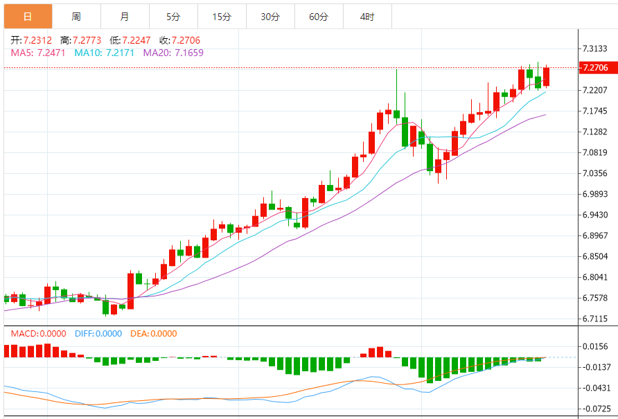 美元兑离岸人民币依然企稳于7.2700附近,多头在周一早盘重拾控制权,结束两连跌。离岸人民币忽略近期走强的中国数据,砼施工仍位于三日矩形形态内。 人民币汇率基本面分析 中国第三季度GD同比增长3.9%,预期3.4%,而9月工业生产同比也增长6.3%,市场预期4.5%。不过中国零售销售同比增幅下降至2.5%,预期3.3%。