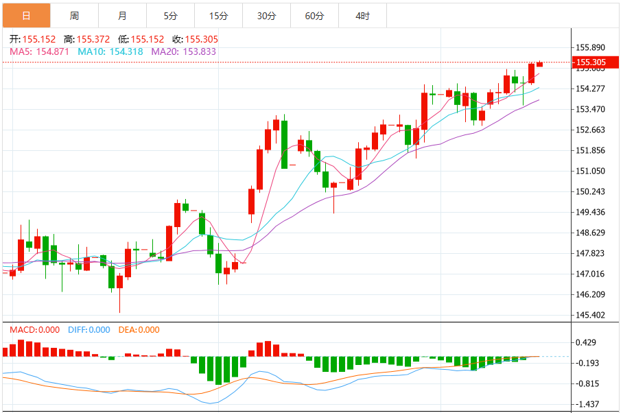 周二(11月18日)美盘,受日本三季度GD收缩影响,美元/日元汇率持续上行并站稳155关口上方。 基本面分析 在日本首相高市早苗与央行行长植田和男举行关键会谈前夕,美元兑日元汇率已突破155。交易员将密切关注会谈进展,以研判日本央行的下一步政策动向。 市场预期高市早苗将主张央行对潜在加息采取谨慎态度,