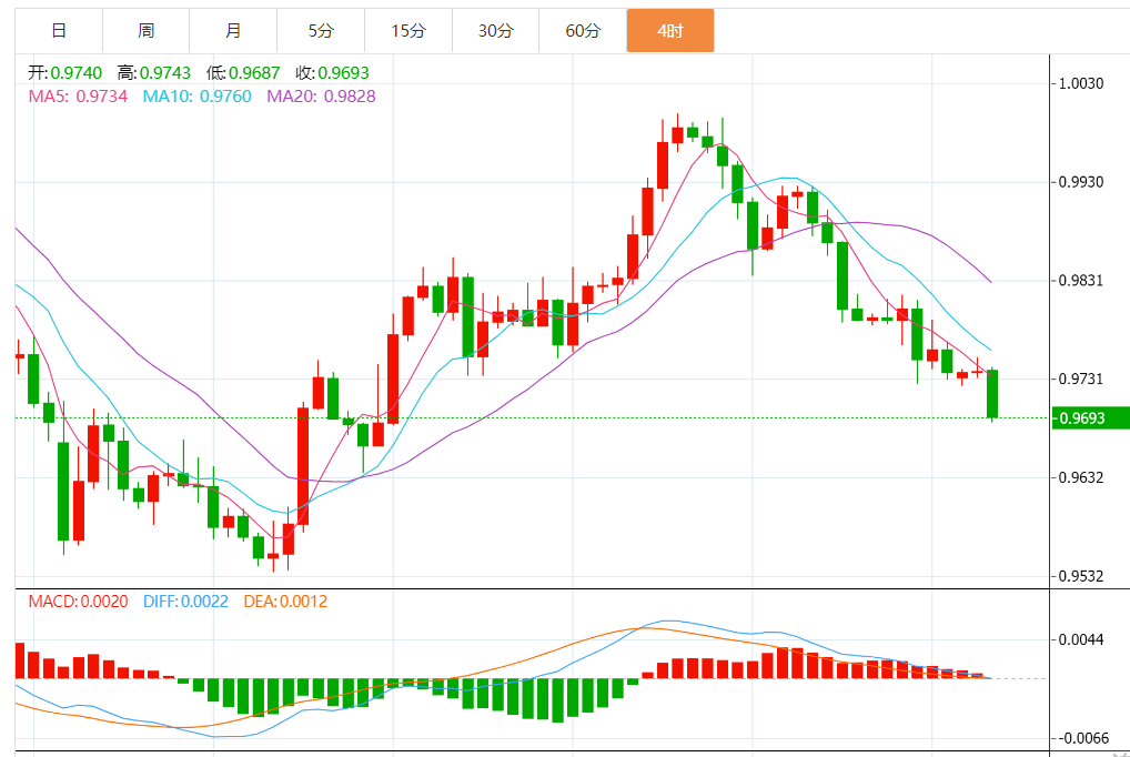 周一欧盘,美元指数短线大幅上涨,欧元兑美元加速下跌,盘中跌破0.9700关键支撑位。日内欧洲央行官员莱恩稍后将与美联储委员埃文斯和布雷纳德发表讲话。 欧元兑美元关注风险趋势 欧元兑美元延续了连续第四天的看跌走势,并在上周五非农就业数据公佈后美元进一步走强的背景下,对0.9700附近区域进行了考验。 事