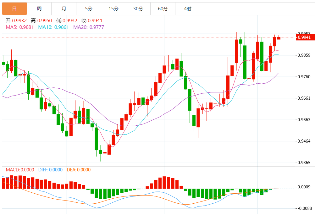 周一亚市市场清淡,美元/瑞郎震荡于0.9950附近,此前美元/瑞郎录得三连涨。美国、日本和加拿大处在假期阻止美元/瑞郎短线上涨趋势。然而,市场担忧经济衰退和美联储大幅加息前景让多头对接近一周高点保持希望。 市场基本面分析 美元走强是该货币对近期上涨背后的关键动力。也就是说,美元指数过去三日上涨,逆转上