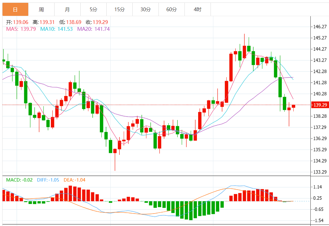 随着市场对经济衰退的担忧加剧,各国央行继续收紧货币政策条件,而英国政府公布了一项减税计划旨在刺激已经受到重创的经济,欧元/日元亚市略下跌0.04%。发稿时,欧元/日元交投于139.28,上涨0.17%。 欧元/日元价格分析 受英镑/日元下跌的影响,欧元/日元周一跌破50日和100日均线汇合水平。欧元/日元下跌当中