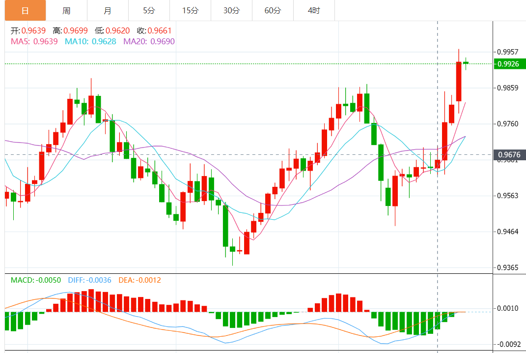 周二亚市,美元/瑞郎录得五日来首次跌幅,创下日内低点0.9910附近。截止发稿,美元/瑞郎自日内低点反弹,现交投于0.9925附近。 市场基本面分析 来自全球各国采购经理人指数好坏参半加大全球经济衰退的可能性。通胀数据上升和央行上调利率正迫使机构投资者下调对西方各国的经济增长前景。 瑞郎方面,瑞士央行(
