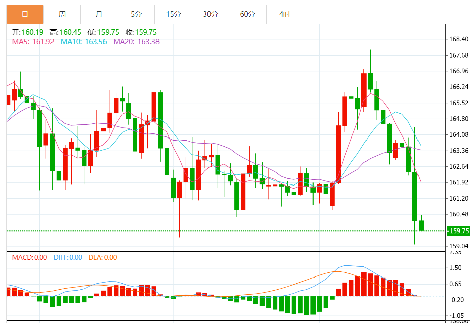 周五亚盘,英镑/日元回调,下跌0.25%至159.79附近,日本当局自1998年以来首次以买进日元干预汇市后,日元周四全面劲升,尽管分析师表示,日本可能难以保持日元的强势。 英镑/日元价格分析 英镑/日元波动表明英镑/日元跌破200日均线,触及4个月新低159.12附近;多头在160.27附近介入,并突破上述水平200日均线