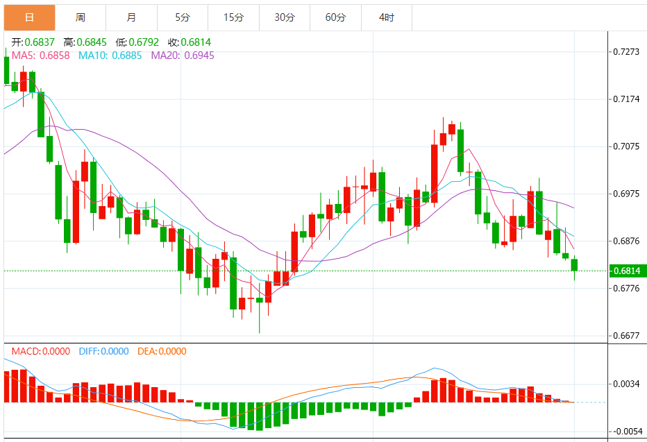 周四亚市,澳元/美元跌至一个半月新低0.6800附近,截止发稿,澳元/美元下跌0.18%至0.6813附近。澳大利亚经济数据疲弱且市场维持避险情绪提振空头。 市场基本面分析 中国数据,中国财新制造业采购经理人指数创下三个月来的最低水平,同时显示制造业活动出现收缩录得49.5,期值50.2,前值50.4。 澳大利亚方面,澳