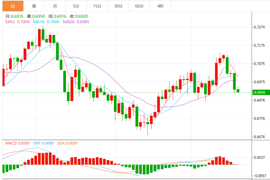周四澳元兑美元脱离低点,但依然下跌,意外下跌的澳大利亚总体就业数据打压澳元。截止发稿,澳元/美元继续走低,现交投于0.6919附近。 基本面分析 澳大利亚7月就业人数下降4.09万,预期增加2.5万,前值增加8.84万。该国的就业参与率下降至66.4%,预期66.8%。就业数据以及周三悲观的工资物价指数可能会阻挡澳洲联储