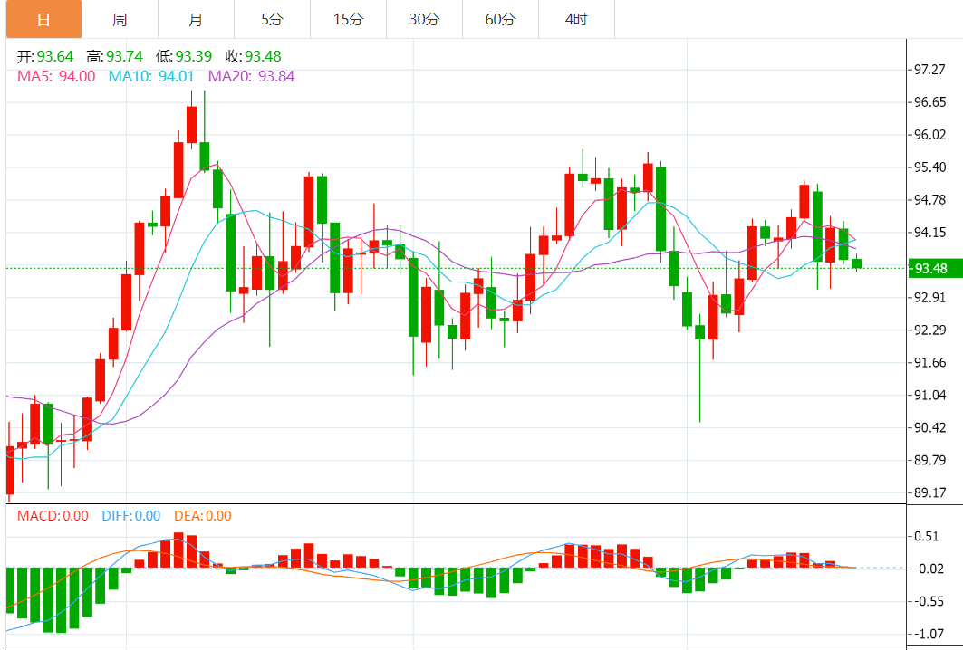 市场担忧中国经济放缓引发避险行情,澳元/日元周三小幅走低。同时美国零售销售数据体现消费者韧性,而联邦公开市场委员会会议纪要释放“鸽派”表明美联储可能“放缓加息”。发稿时,澳元/日元交投于93.49。 澳元/日元技术走势分析 澳元/日元处于盘整阶段,过去几天未突破93.08-94.47区间的顶部/底部。值得注