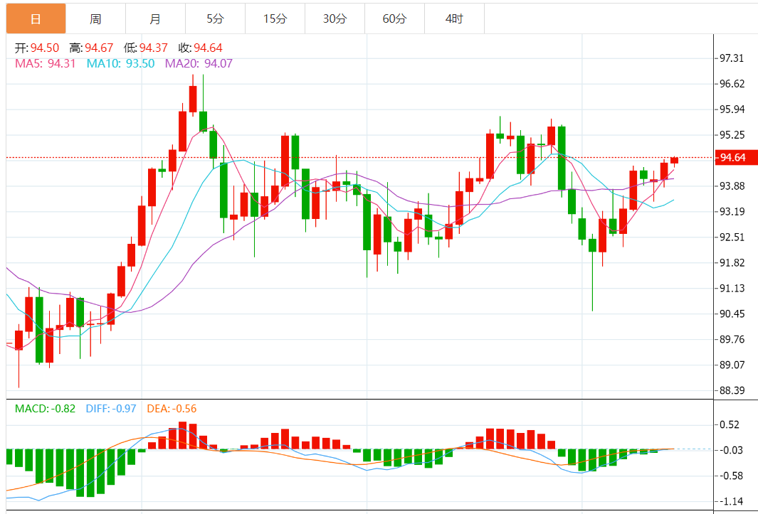 周五亚盘,澳元/日元震荡拉升,现交投于94.60附近。 基本面分析 市场积极的风险情绪暂歇,美股收盘涨跌互现,澳元/日元结束两日涨跌。盘初市场风险偏好加大,原因是美国生产者价格指数出现有所改善,这表明生产商方面通胀也在回落。因此交易员认为,上述数据以及周三的美国通胀可能会缓解美联储应对通胀的压力,这