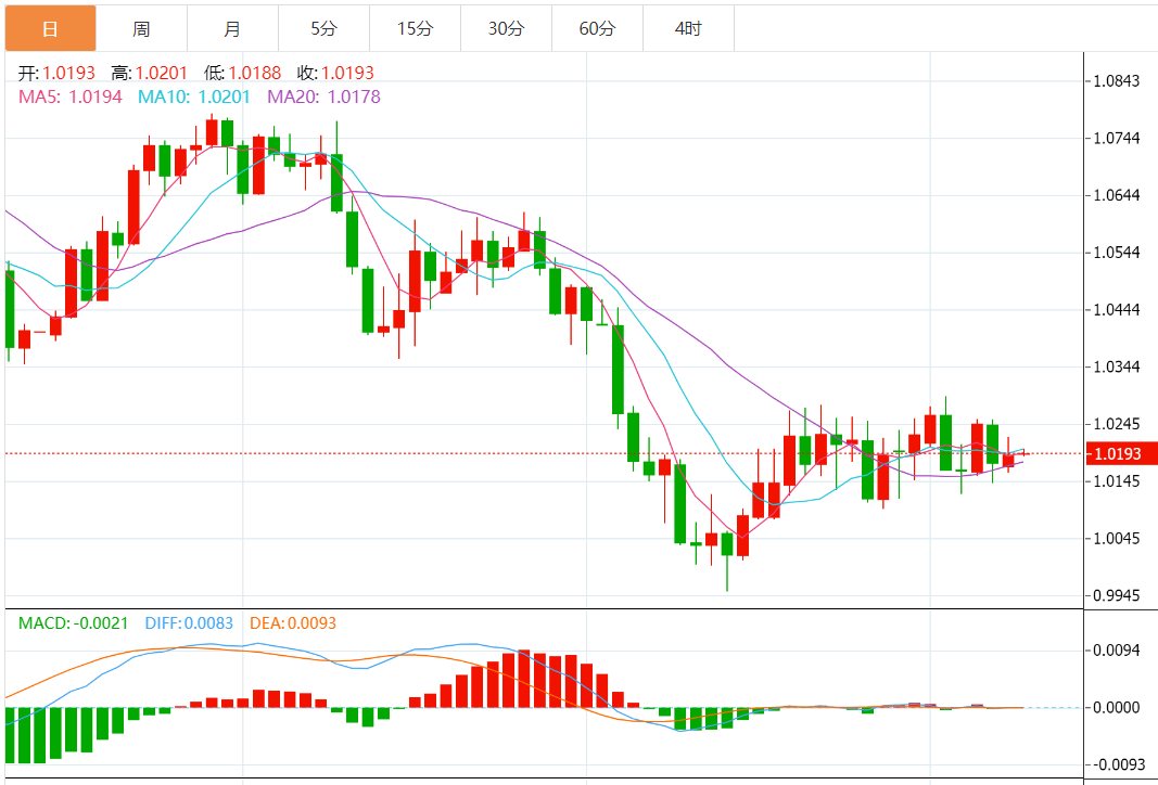 周二亚市,欧元/美元交投于1.0188-1.0194窄幅区间。继试图突破1.0200心理关口后,欧元/美元出现小幅下跌。从更大级别周期来看,欧元/美元继上周创下低位1.0146后温和上涨。 基本面分析 投资者更倾向于保持观望,周三公布的美国消费者物价指数(CI)将决定欧元/美元方向。由于原油供应前景暂时有所好转和全球经济出