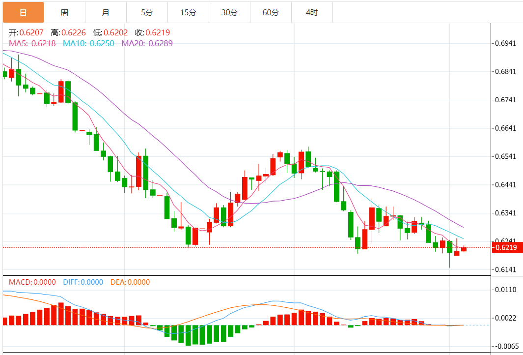新西兰经济信心指标维持疲弱且周二亚市市场全面恢复正常交易开盘上涨后,截止发稿,纽元/美元徘徊于0.6219附近。 基本面分析 新西兰二季度国家经济研究院商业信心指数降至2020年3月以来的最低水平,降至-65%,而预期为-40%。继前一交易日美国处在假期空头稍作喘息之后,新西兰数据公布后也令市场整体避险情绪回归
