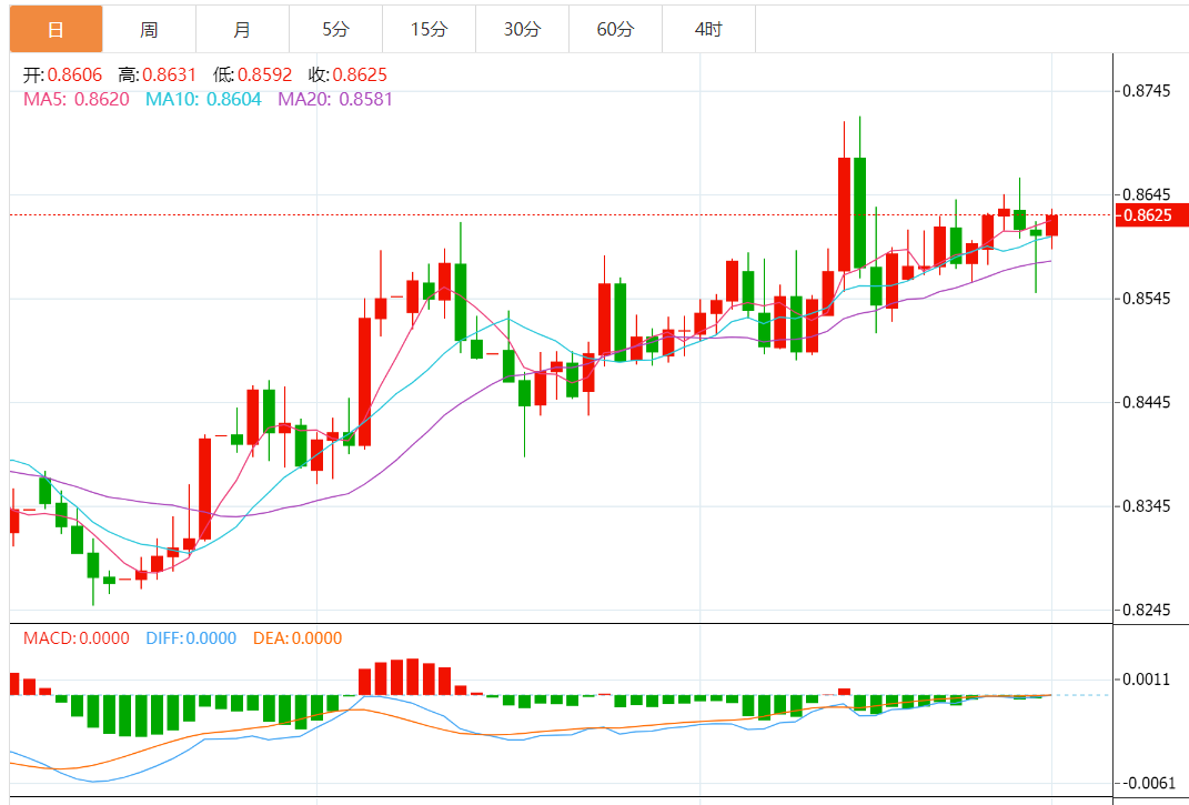 周五欧盘,由于欧元兑英镑在亚洲时段迅速转升,该交叉盘料轻微修正。不过汇价在周四触及0.8511的低点后出现积极的买盘,汇价依然看涨并突破了周四的高点0.8620并尝试企稳于其上。 基本面分析 虽然市场对欧元区调和通胀率的预期上升,欧元表现强于英镑。根据市场共识,欧元区调和通胀率料从前值8.1%上升至8.3%。由