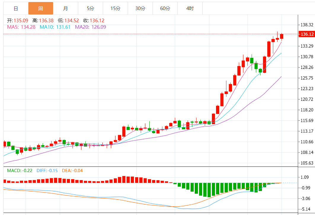 周三亚盘,美元/日元走低,目前交投于136.00附近,美元/日元正盯着新高,动能可能会上涨。 基本面分析 尽管日本零售销售月率自前值1%下滑至0.6%,但仍高于期值-0.1%。日本经济产业省公布的大型零售商销售数据强劲,该指标已攀升至8.5%,明显好于期值1.3%和前值4%。 从更全面角度来看,日本经济数据保持坚挺,表