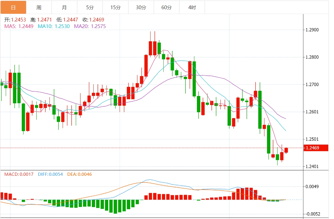 周四亚盘,英镑兑美元震荡徘徊于1.2469附近,日内上涨0.13%。英国通胀数据进一步回落,促使市场预期英国央行将在年内启动降息。 英国通胀数据进一步回落 英国央行暗示,英国仍在降息的轨道上,因为最新数据显示英国经济当中物价成长进一步放缓。周三,英国国家统计局数据显示,在截至3月份的12个月里,英国消